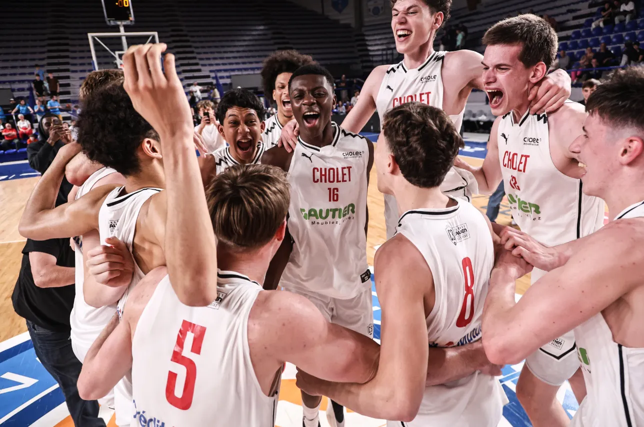 Après la victoire du club en Coupe de France U17, Cholet Basket fait carton plein dans la catégorie cadets grâce à son succès au Final Four du Groupe A du championnat U18 Elite dimanche à la Halle Vacheresse de Roanne. Le club du Maine-et-Loire a confirmé son large succès de la veille contre Gravelines Dunkerque (93-56) par un match bien plus disputé mais remporté en finale contre le Pôle France (76-68).