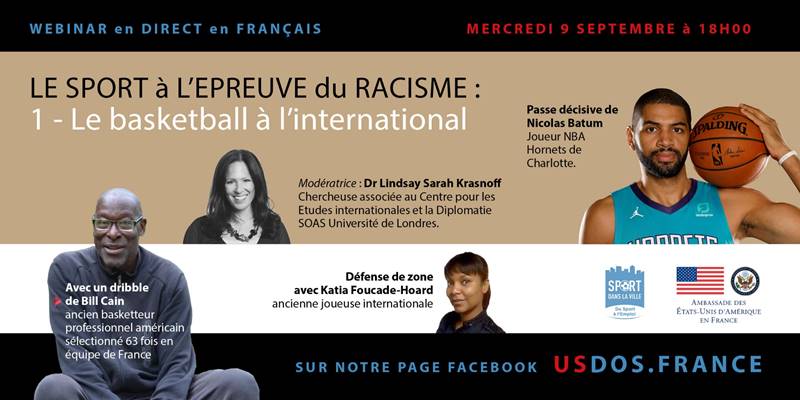 Sur la page facebook USDOS.FRANCE va être organisé le mercredi 9 septembre à 18h00 un Webinar en direct (et en français) avec comme thème « le sport à l’épreuve du racisme: le basket à l’international ».