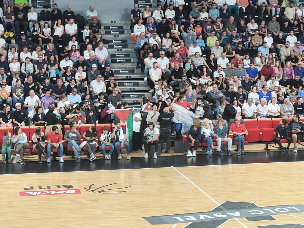 Match de rentrée interrompu quelques minutes à l’Astroballe lorsque des spectateurs munis de drapeau de la Palestine se sont rassemblés en tribune latérale en face de Tony Parker