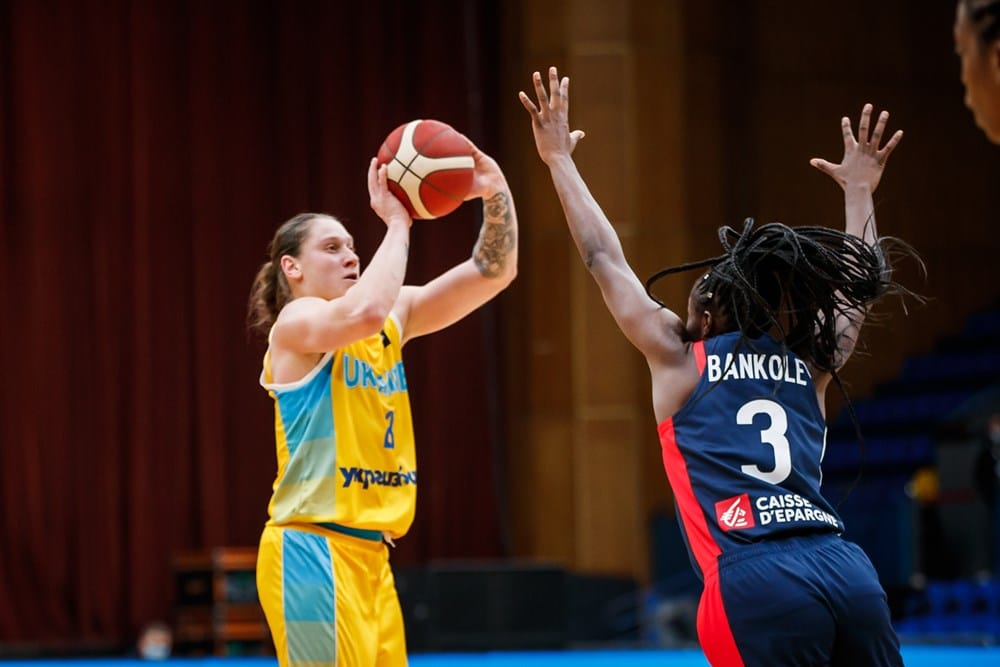 Marie-Eve Paget vivait sa première sélection en équipe nationale comme meneuse titulaire aux côtés de Marine Johannes, Gabby Williams, Endy Miyem et Sandrine Gruda, qui forte de sa 214e sélection, prenait le capitanat. Et la Landaise inscrivait le premier panier du match, un tir primé. Mais c’est l’Ukraine, autour de l’inévitable Alina Iagupova comme architecte, qui s’appropriait avec fermeté les commandes pour mener 12-6 puis 18-11. Après Gabby Williams, souvent impuissante, Jean-Aimé Toupane mettait Ornella Bankolé sur le dos de la double MVP de l’Euroleague pour tenter de la freiner. Mais les Bleues manquaient de concentration en défense et les Ukrainiennes, adroites, à l’image de Krystyna Matsko (15 points à 6/7 aux tirs dont 3/4 à trois-points sur ses 19 premières minutes de jeu), poussaient déjà le bouchon très loin dans une orgie offensive, avant la fin du premier quart-temps (31-21).