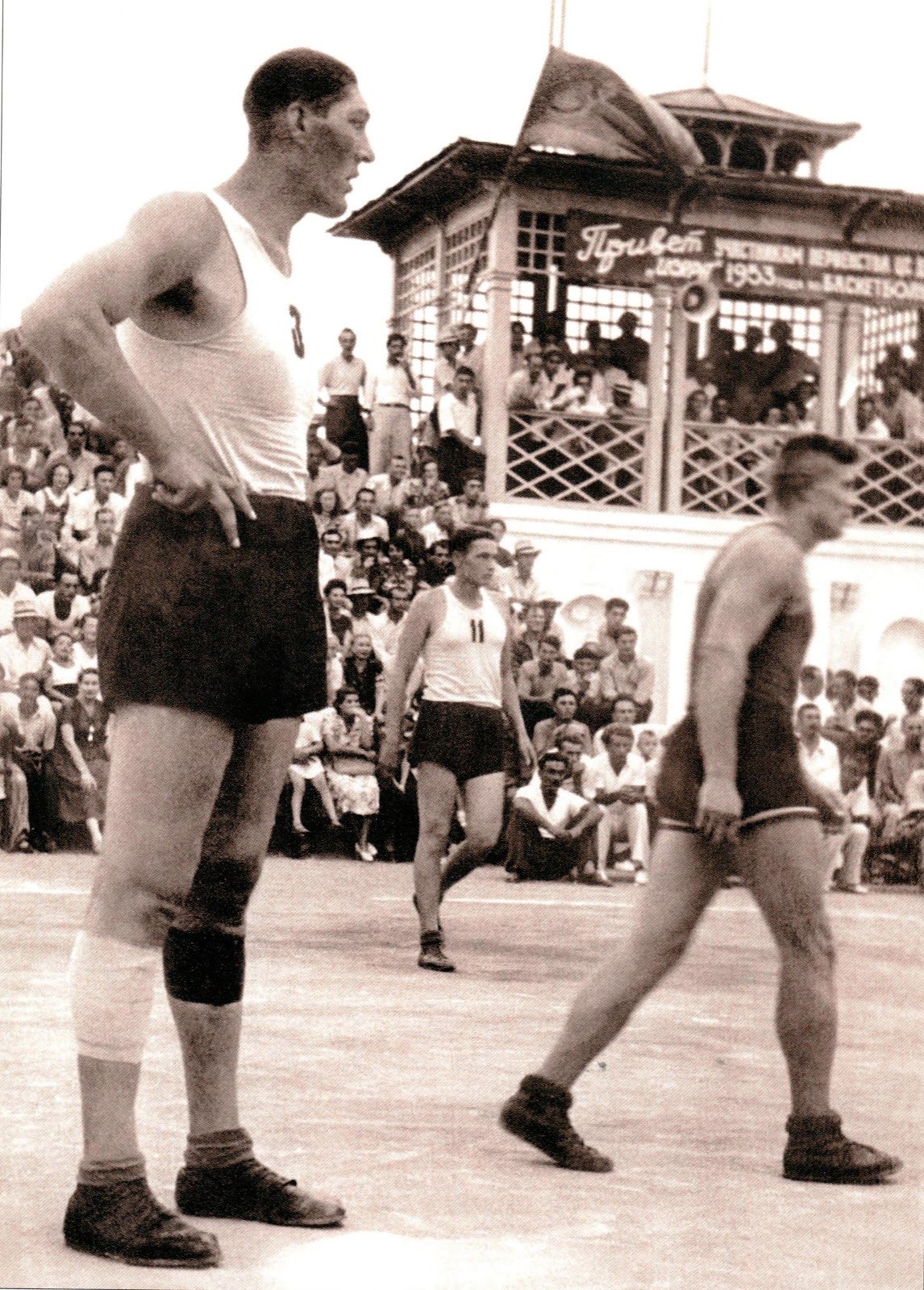 Remarqué par un entraîneur de basket, il déménagea ensuite en 1947 à Alma-Ata et porta les couleurs de l’équipe locale, Petrel, pendant dix ans. Grâce à lui et son équipier Armenak Alachachian, le basket-ball est vite devenu un sport populaire au Kazakhstan. Les fans étaient forcément impressionnés par son énorme stature et voulaient se prendre en photo avec lui -on n’a rien inventé avec les selfies- et le harcelaient de question : combien mange un homme de votre taille ? Combien de litres d’eau buvez-vous chaque jour ? La réponse était une quinzaine de litres… Tout était forcément démesuré chez ce géant, qui était parait-il ouvert aux discussions et qui n’a jamais montré de complexe du fait de son énorme stature, qui lui provoquait des inconvénients de toutes sortes dans la vie quotidienne. Ses chaussures étaient évidemment faites sur mesure et souvent ne résistaient pas à son poids. Chez lui, il disposait d’un lit adapté à son gabarit mais pas quand il devait jouer à l’extérieur. Il acheta une voiture, une Moskvich 400, avec une suspension robuste, un toit surélevé et un siège situé à l’arrière pour qu’il puisse conduire en allongeant ses immenses jambes, mais il n’était pas pour autant à l’aise et c’est sa femme Tamara qui lui servait de chauffeur.