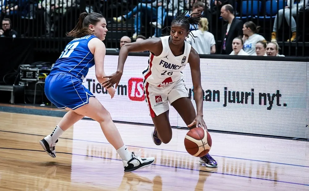 Voir ou revoir les highlights de Finlande-France, comptant pour la qualification à l'EuroBasket féminin 2023, avec au bout la victoire des Bleues, 46-82.Photo : Migna Touré (FIBA)