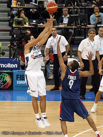 Les Grecs ont 11 secondes pour construire leur dernière offensive. Zizis remonte la balle, pénètre, se retourne et file la balle à Dimitrios Diamantidis qui est tranquille derrière la ligne à trois-points. Parker ne peut l’empêcher d’armer. De sa main gauche magique, le Diamant Grec envoie la balle dans le filet.