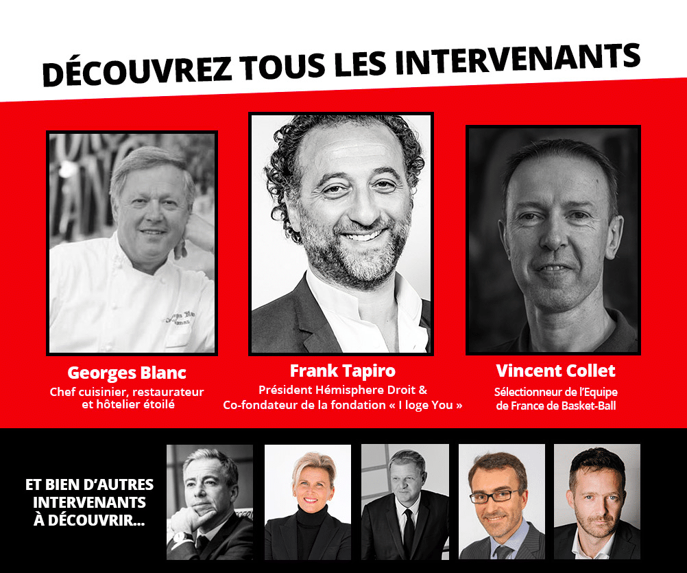 Parmi les intervenant de cette année, nous retrouverons Franck Tapiro (publicitaire), le grand témoin de cette édition 2020 : Vincent Collet (entraineur de l’équipe de France de Basket), George Blanc (chef triplement étoilé), Xavier Collot (Directeur Epargne Salariale et retraite d’Amundi), Patrice Begay (Directeur exécutif et directeur de la communication de bpi France), Caroline Dassié (Directrice exécutive des supermarchés Carrefour France), David Charbonnier (Directeur de région Auvergne Rhône-Alpes chez Manpower), Alex Kergall (Coach et préparateur international certifié, spécialisé dans la performance)