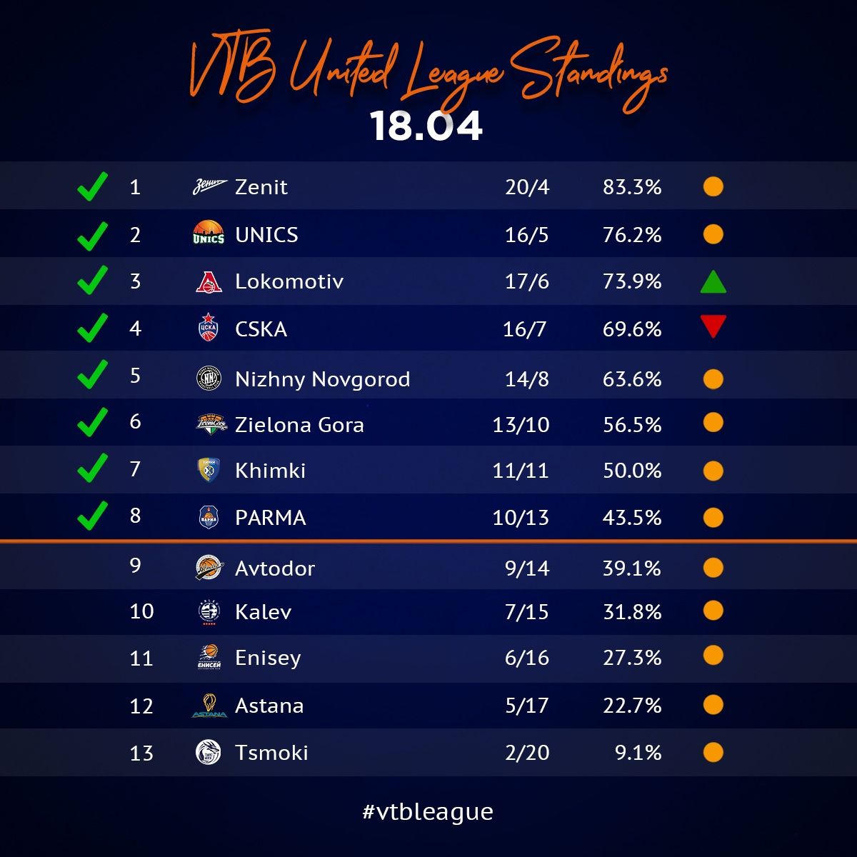 Les années précédentes, la lecture du classement de la VB League indiquait invariablement que la première place était détenue par le CSKA Moscou. Ce n’est plus le cas. Pour la première fois en 7 ans, le club de l’Armée a cédé le leadership au Zenit Saint-Petersbourg. Pire: Le voici rétrogradé à la 4e place.