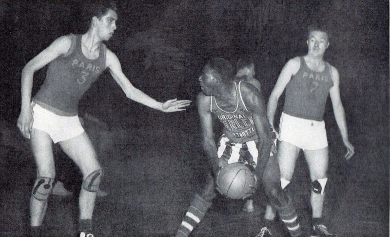 En juin 1952, la fédération fait preuve d’une audace inouïe : elle organise un match entre l’équipe nationale et les Harlem Globe Trotters, qui sont tout de même le symbole du professionnalisme. Or, personne hors des Etats-Unis n’est censé gagner de l’argent en pratiquant le basket ! La fédé a obtenu la bénédiction de Renato William Jones, le tout-puissant secrétaire-général de la fédération internationale, qui est d’ailleurs présent au Vel d’Hiv. La fédé prend tout de même une disposition hypocrite : même si sur le tableau d’affichage il est écrit « France », l’équipe nationale porte officiellement le nom de sélection de Paris. Comme ça le match passera aux oubliettes de l’Histoire ! Il s’agit d’ailleurs d’un véritable tournoi avec une autre sélection de Paris, une vraie, et la présence des Celtics de New York dont la valeur n’a rien à voir avec leurs collègues de Boston. Le capitaine André Buffière est enchanté par cette confrontation ; c’est un bon test avant les Jeux Olympiques qui vont se tenir à Helsinki.