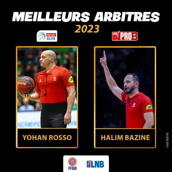 Le Haut Niveau des Officiels (HNO) a dévoilé les noms des deux meilleurs arbitres de Betclic Élite et de Pro B pour la saison 2022-2023. Il s’agit de Yohan Rosso (Betclic Élite) et Halim Bazine (Pro B).