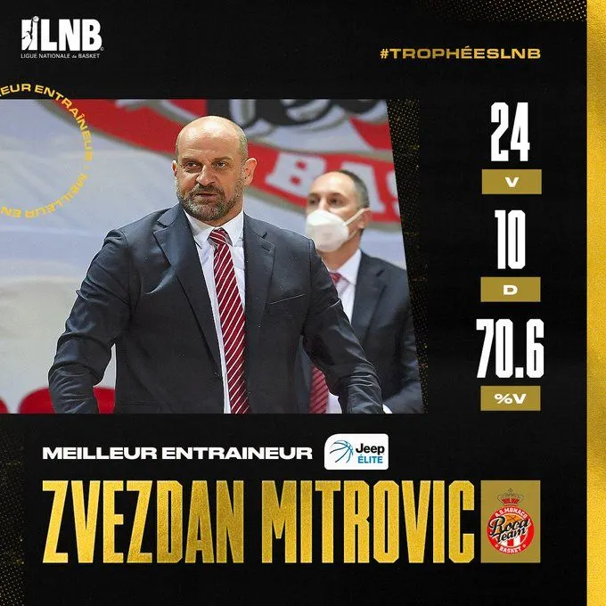 Pour la troisième fois de sa carrière, et après 2017 et 2018, le coach monténégrin de l’AS Monaco, Zvezdan Mitrovic, 51 ans, a été élu Coach de la saison 2020-21 de la Jeep Elite suite à un référendum effectué auprès des joueurs, des coaches et des journalistes.